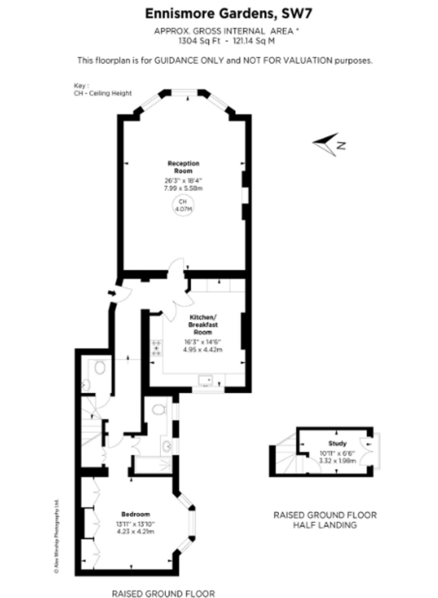 A magnificent raised ground floor one-bedroom apartment offering exceptional space and a versatile mezzanine level, perfect for use as a study. Spanning over 1,300 sq ft, this impressive home features a grand reception room with striking parquet wood flooring, soaring ceilings and a charming bay window that floods the space with natural light.