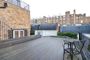 A magnificent first floor apartment covering 890 square feet located in this Prime Knightsbridge Square, benefiting from a spacious roof terrace to the rear and a balcony to the front overlooking the Communal Gardens.