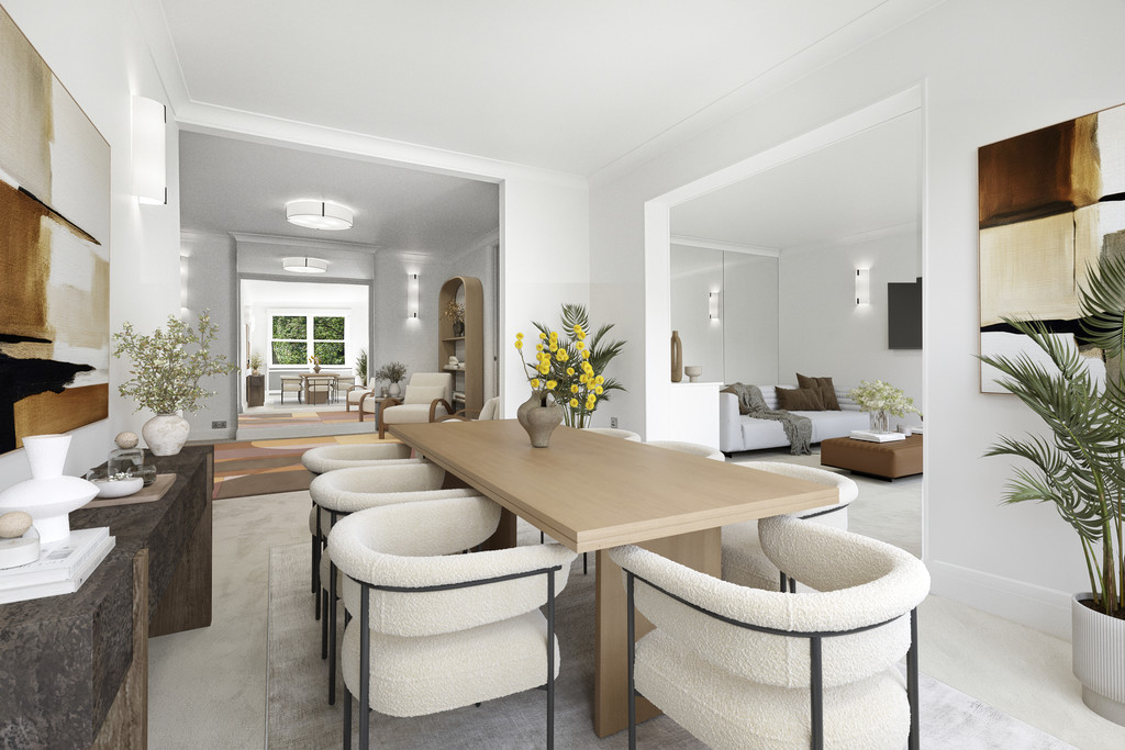 A beautifully refurbished three-bedroom apartment which boasts a new kitchen and bathrooms, versatile entertainment space and three good bedrooms. The three open and connected reception areas could host a variety of different set ups to suit everyone’s needs, with one of the living rooms also having a private East-facing balcony which is so lovely for the morning light. The three bedrooms all have built-in wardrobes, and the particularly bright dual aspect principal bedroom also benefits from an en-suite shower room. A second private balcony, which overlooks the stunning gardens, is accessible from the 2nd bedroom. The building, which boasts a superb team of Porters, recently underwent a refurbishment of its own and is now presenting very well. Residents benefit from hot water and central heating being included and the most wonderful communal gardens. Ennismore Gardens is a highly sought after location and Kingston House South a popular address. NB:furniture in images is CGI