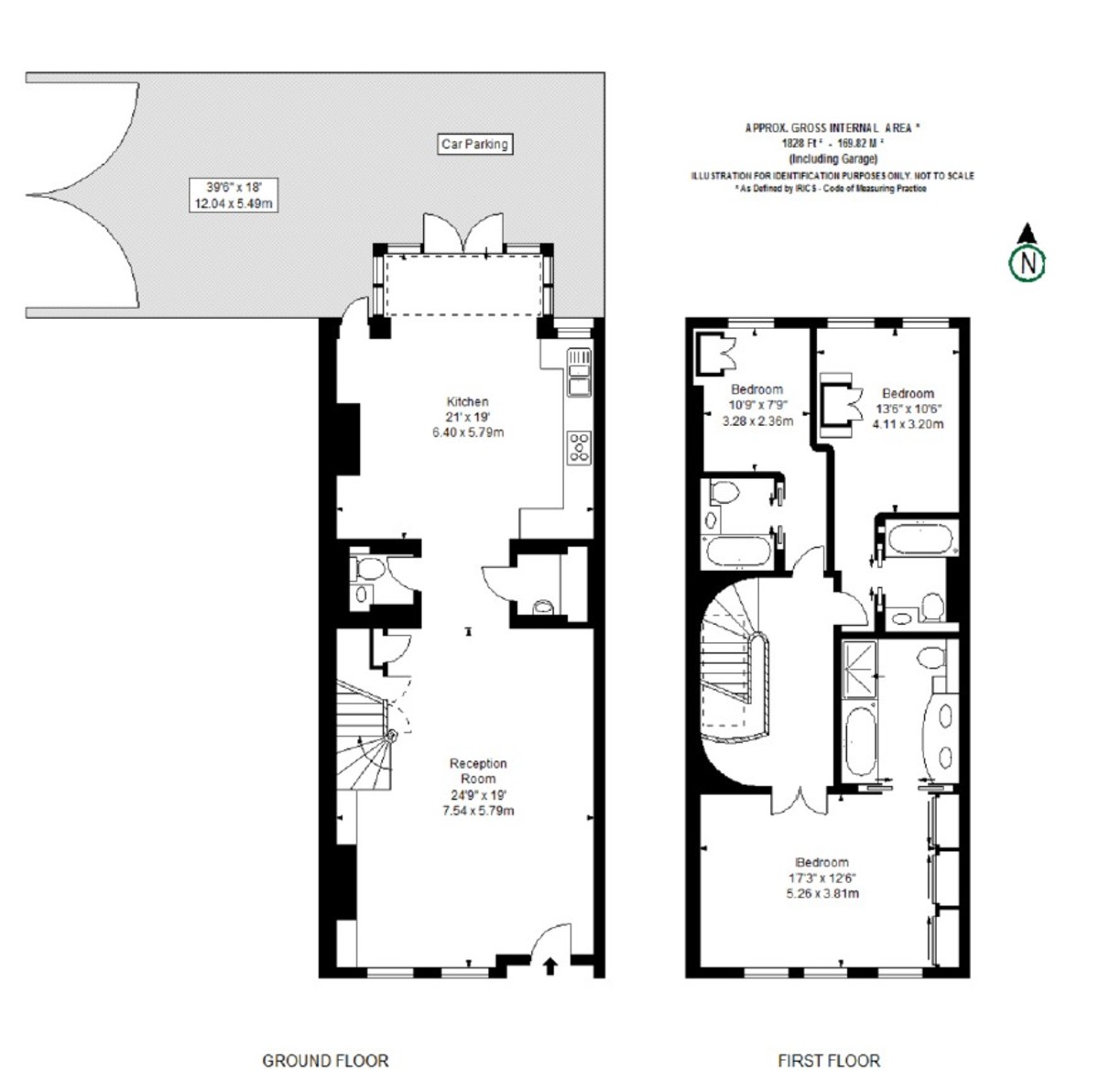 The property measures 1,828 square feet over two floors and benefits from a fabulous spacious reception room with high ceilings leading through to a modern eat-in kitchen. The principal bedroom is located on the first floor, with excellent storage and a stunning en-suite bathroom. A twin bedroom with en-suite bathroom and a good sized single bedroom with en-suite bathroom are also on the first floor. Private parking for 2 cars is at the rear of the property accessed through electric gates.