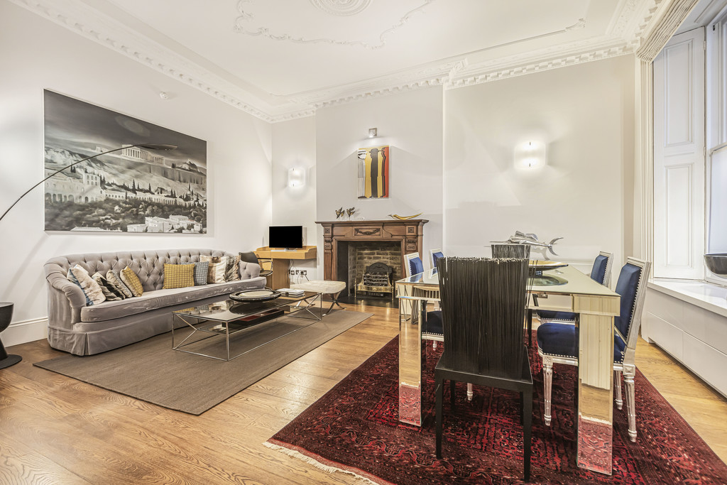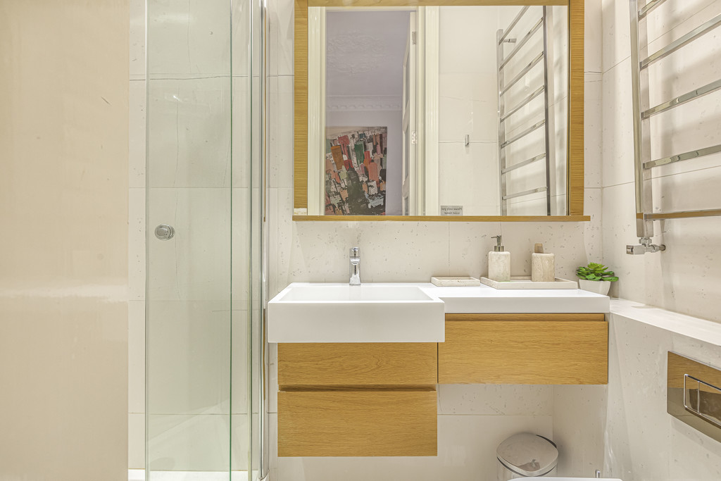Beautifully presented two-bedroom, two-bathroom ground-floor apartment with private entrance, ideally located in South Kensington. This stylish home features a bright reception room with high ceilings, feature fireplace, and a dining area for six. Both double bedrooms have en-suite bathrooms, with the principal suite offering built-in storage, a freestanding bath, steam shower, and built-in TV. The modern kitchen is fully fitted with integrated appliances, plus a utility cupboard and guest WC. Finished with wood flooring, this property combines elegance and comfort. Just moments from Gloucester Road and South Kensington’s cafés, restaurants and transport links, it’s perfect for professional tenants seeking quality and convenience.