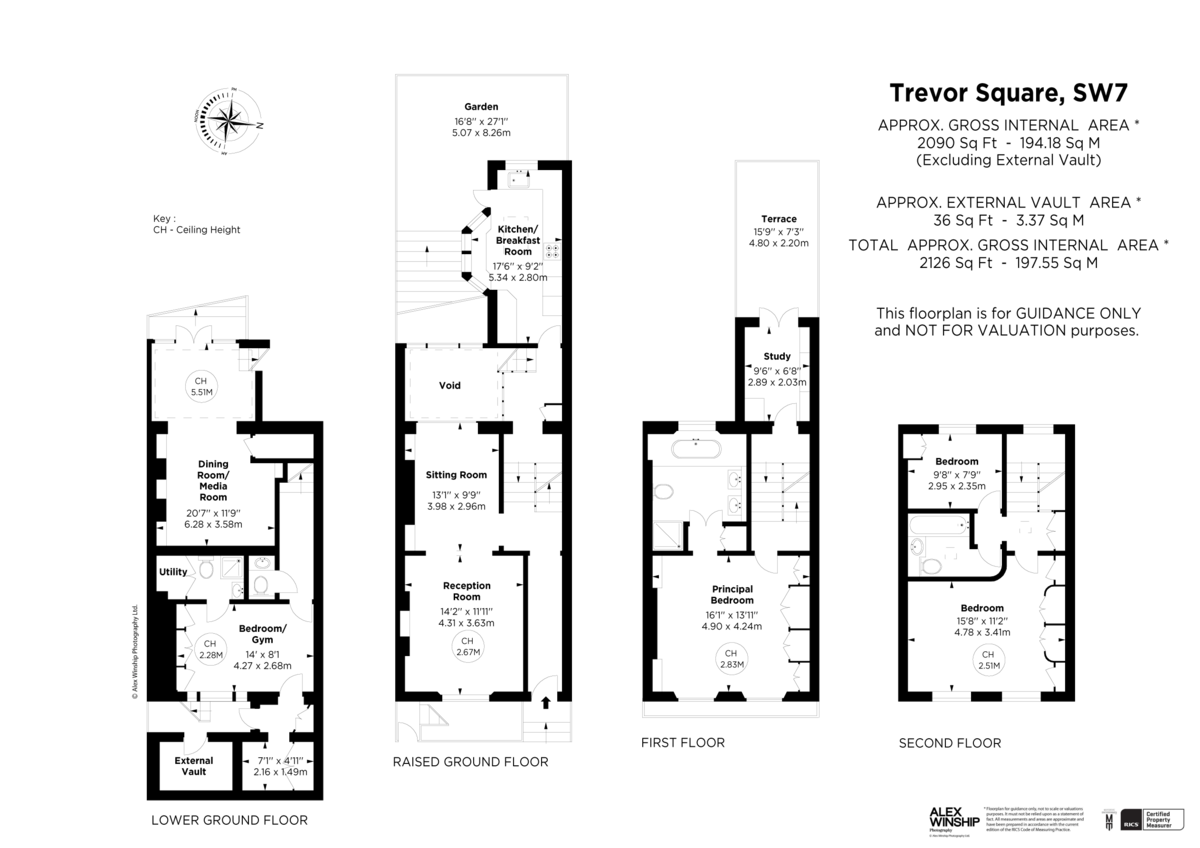 From the raised ground floor entrance with marble steps into Versailles parquet flooring throughout, the first sitting room has a simple slate hearth with white surround and is completed by a cosy gas effect fire creating an atmospheric focal point to the double room. To the rear the of the seating area an airy void opens on to the dining room and snug below with an abundance of natural light coming from the double height conservatory to the rear of these rooms. Heading down to the half landing the kitchen breakfast room with views over the luscious green garden from the built in banquet seating offer a perfect place for informal dining. A few steps away, the formal dining room with it voluminous ceilings and another gas fire create another wonderful entertaining space. Stone steps lead to the tranquil leafy garden with its mature trees and shrubs providing plenty of colour along with privacy. To the front of the house is another double bedroom with ensuite shower room and a utility cupboard, comfortably sized with built in storage the flexibility of the space allows this to be used as a home gym at present. Beyond this is an internal under pavement vault with plenty of fitted storage, plus another door opening to the external vault and an additional staircase leading back to the street. The principal bedroom with full en- suite bathroom with standalone bath, separate shower and twin vanity occupies the first floor, boasting bespoke cabinetry, a full width balcony and ceiling height measuring over 2.8m. A further two bedrooms and a bathroom sit on the floor above, with a bright study on the rear landing from which you access the roof terrace.